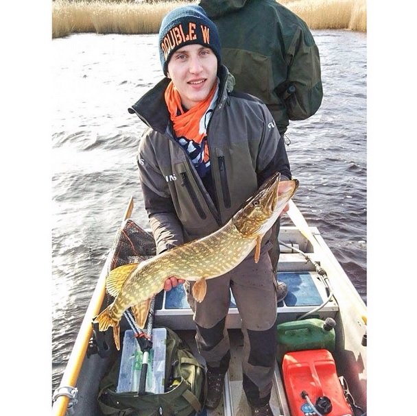 Jag fortsätter snacka gädda med Bobo. Gäddfisket måste ju få fokus, även om Bobo inte är gäddfiskare i grunden. Men likväl, ett helt ok PB på gädda har han ändå. Fisken vägde in på 5,6 kilo. (Inte Bobo på bilden.), men finmössa och finschal. 🙂