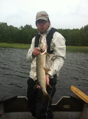 Jag körde på ett jerkbete, två wobblers, ett skeddrag och ett ytbete. (Bilder kommer på alla beten inom en snar framtid, väntar på att Johan ska skicka dem, förhoppningsvis imorgon).