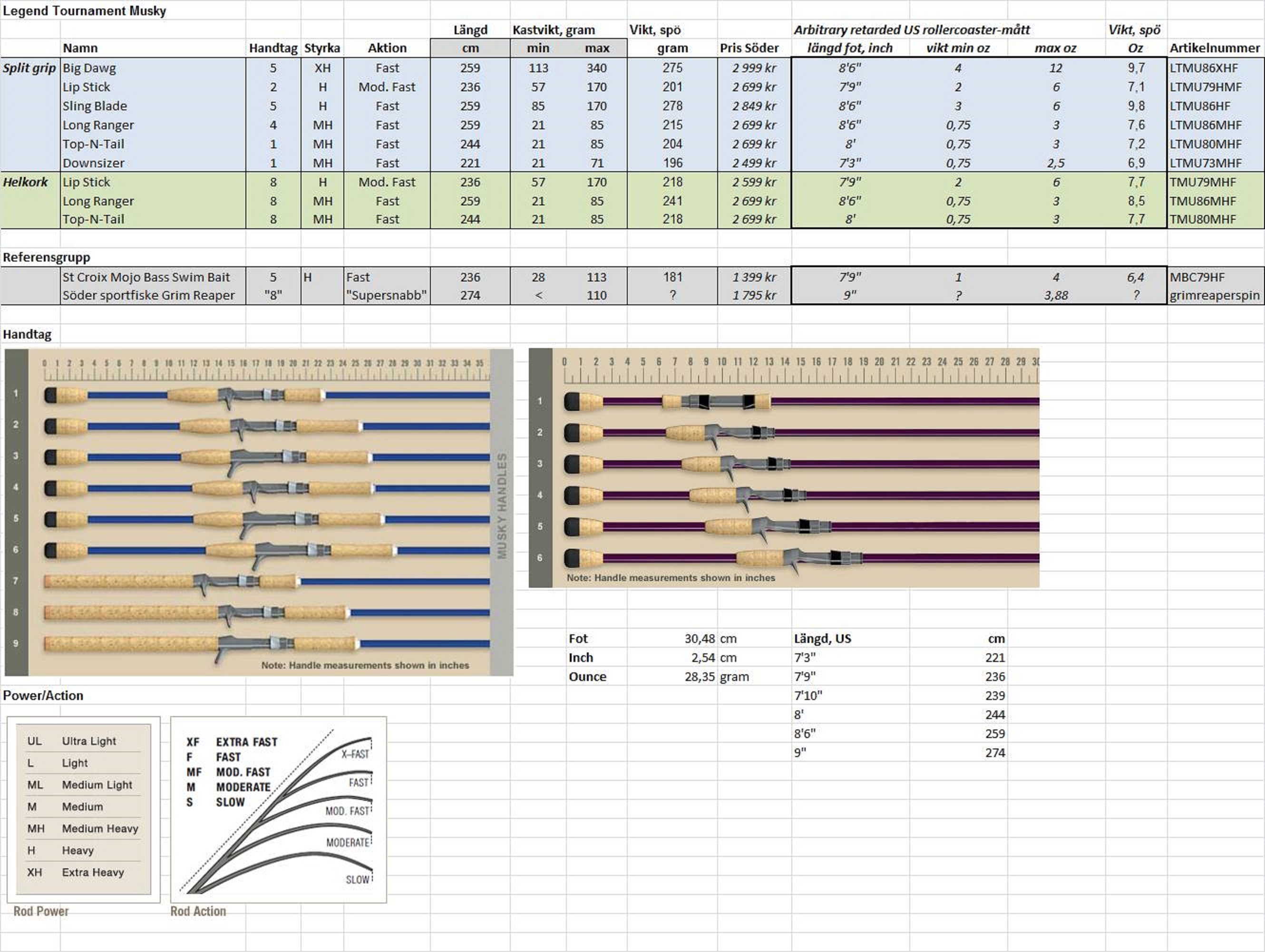 “Gällande St. croix så är de flesta rätt underklassade. Rätt svårt att gå på tabellen ovan trots att den är rätt översatt och omräknad så pallar samtliga st croix spön betydligt mer för vårt traditionella gäddspinn där vi inte gör figure 8s osv efter varje kast. Jag fiskar tex 30 cm shadjiggar 250g plus mitt mitt bass swimbait som är klassat till 70g men det är väl en smaksak antar jag, fungerar klockrent för mig. Annars är det numera top n tail så är det spöt som jag personligen tycker passar bäst till det mesta. Fiskar man bara tyngre shadar typ 30 cm Action Plastic med en 25g skalle så passar Lip Stick bättre. Men alla tycker olika, vissa känner att dom vill ha riktigt styva spön och då får man gå till de tyngre klasserna som inte alls faller mig personligen i smaken.”