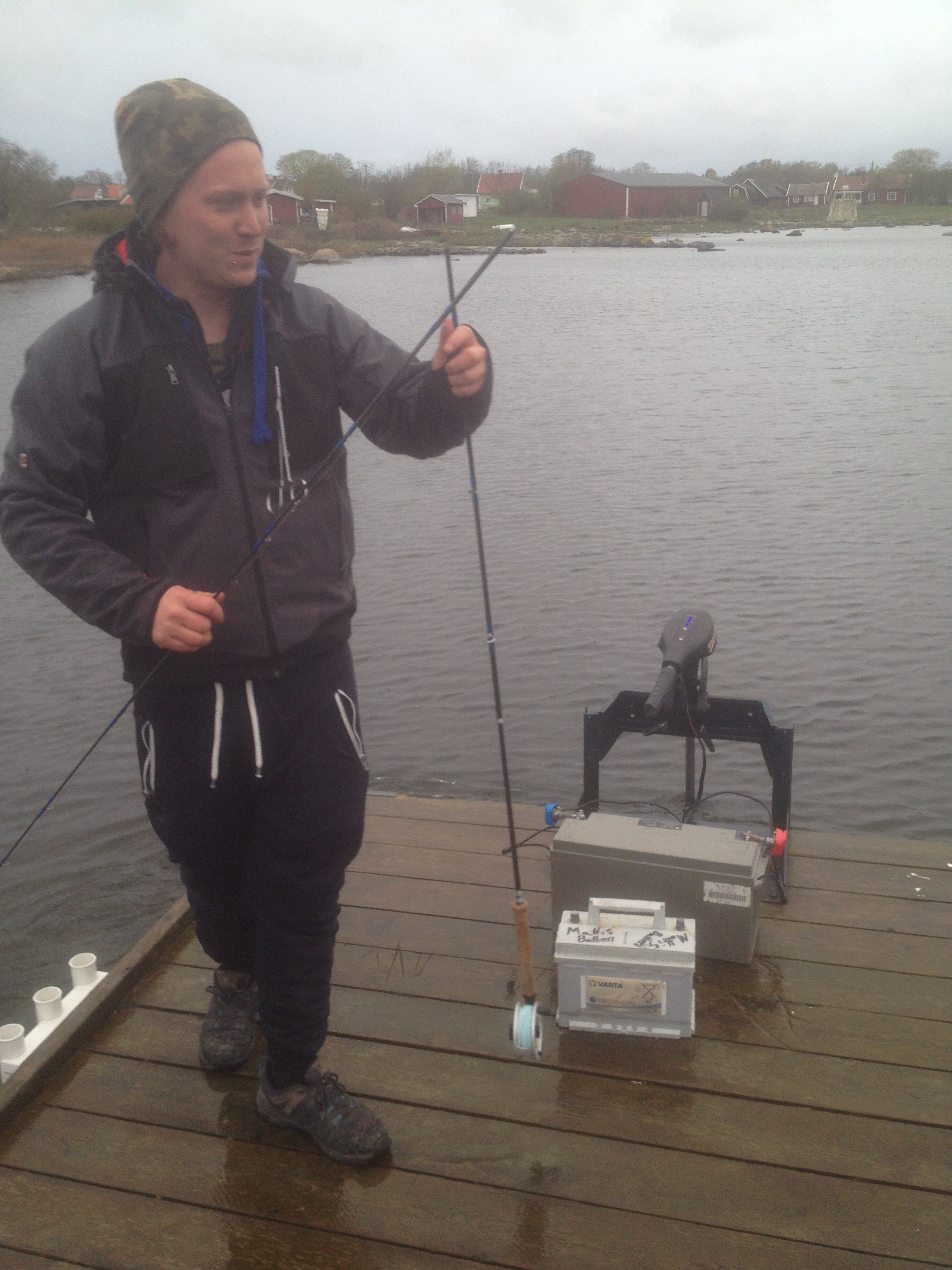 Fick mig en privat fluglektion av Mattis. Superbra, men mina handleder och händer var helt slut så jag orkade knappt hålla i spöt. Märk väl kungligaste båten, en badbrygga med elmotor. Sjukt stabil och festlig.