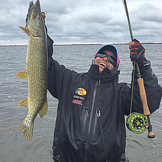 Dag två, jag kommer minnas den långt framöver. Dagen då jag tog min första flugfiskade gädda. Ingen bjässe någonstans. Men efter gårdagens nollning så kändes det fantastiskt. Hade inga preferenser liksom, hur känns ett hugg på flugfiskespö, hur ska jag egentligen drilla. Avisst, jag hade fått förklarat att knipa med fingret som håller linan, samma finger på den hand som håller spöt. Tror ni det var så det blev när jag fick min första. Haha! Nej, icke! Jag tappade linan från högerhanden, höjde dock spöt som man ska, men stod och höll emot med vänsterhanden. Alltså samma hand där jag som vänstervevare har all slacklina, eller lina som inte är utkastad eller vad man säger? Har inte riktigt kommit in i terminologin som ni märker.  😀