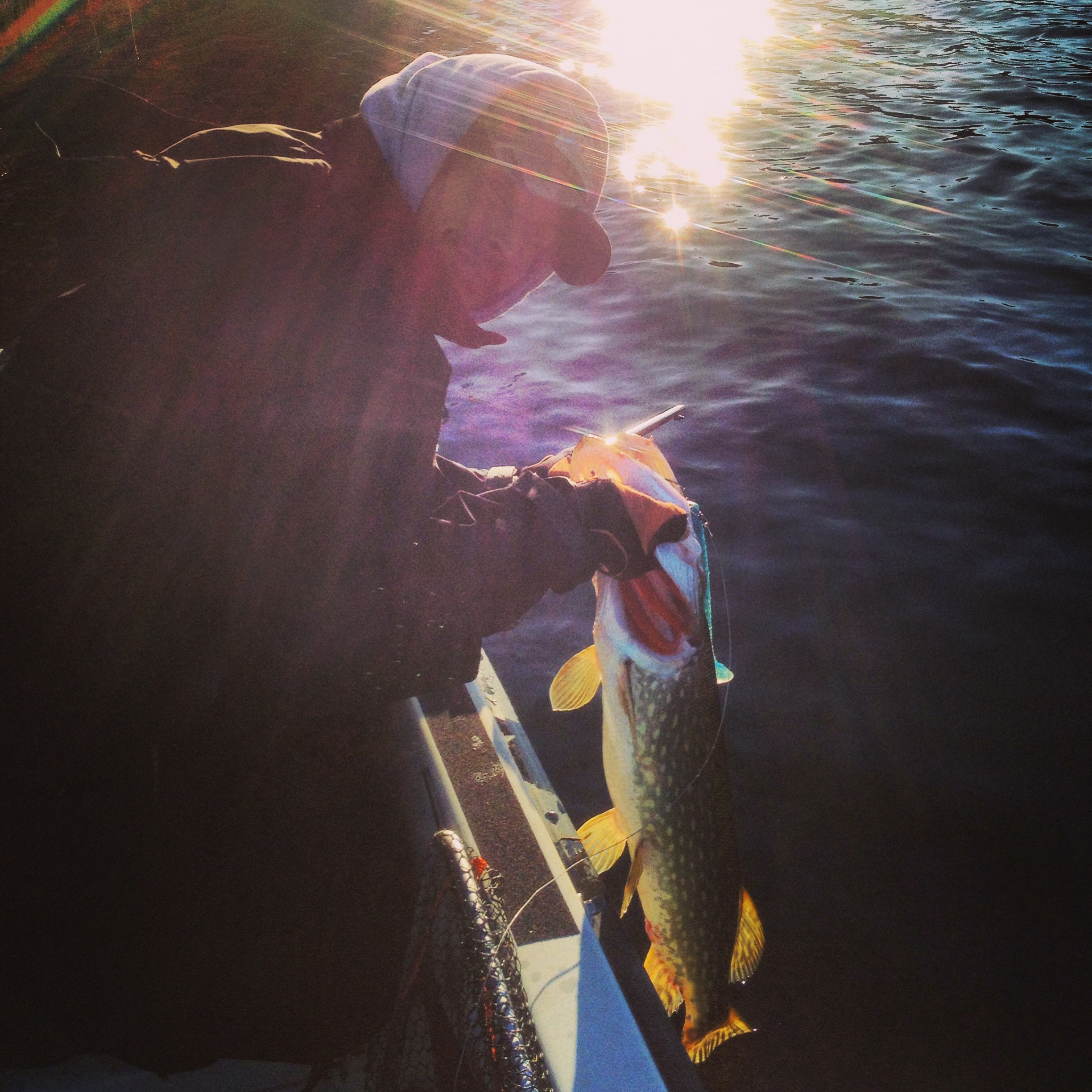 Här syns det hur glad man kan bli för sin första landade gädda på flugfiske. Pure glädje!