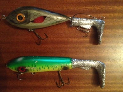 . Två Svartzonkerbeten jag paddlat, ett i trä (det övre) och en plastMcTail.