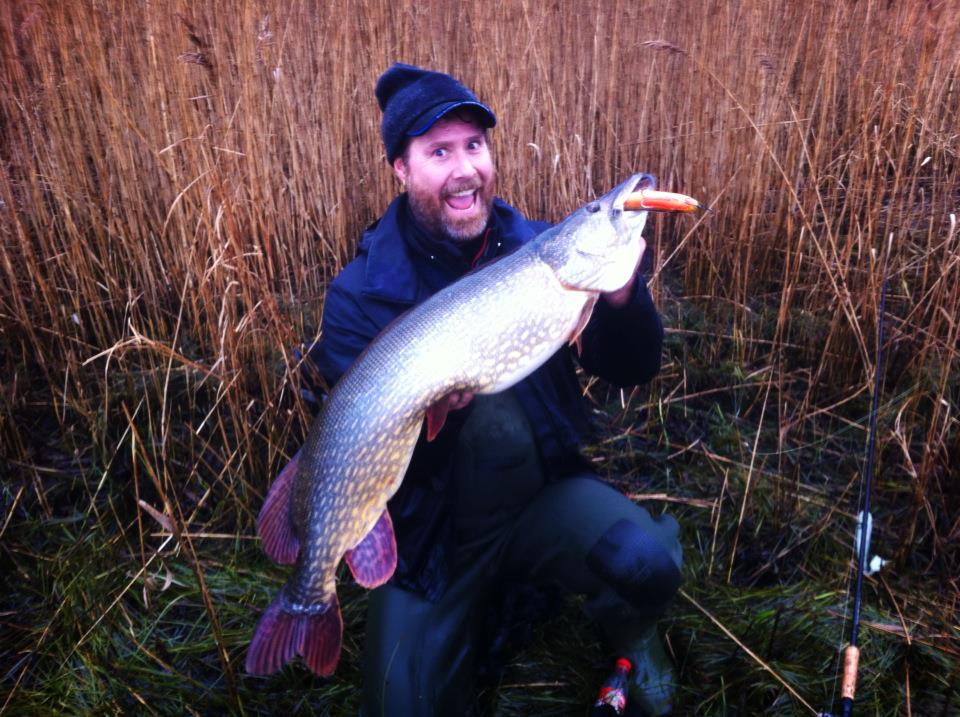 -Var fiskar du oftast själv? Norra roslagen. (Nu vet jag inte med säkerhet att just denna gädda är just norra Roslagen, men för intervjun kan vi säga att det är så.)