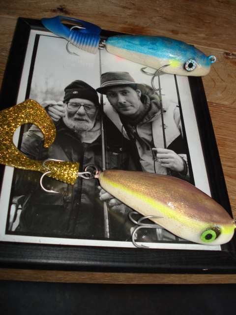 -När startade du ditt betesbyggeri? Hur startade det? Blev de första betena bra? (Har du några bilder på tidiga beten? Jag byggde några vobblers vid 2000 och de fångade några gäddor. Sen byggde jag mina första tailar 2005. Om de blev bra. Ja de fångade massa fisk men såg inte ut som mina beten gör idag. Några år tillbaka. Claes och morfar samt två tidiga beten.