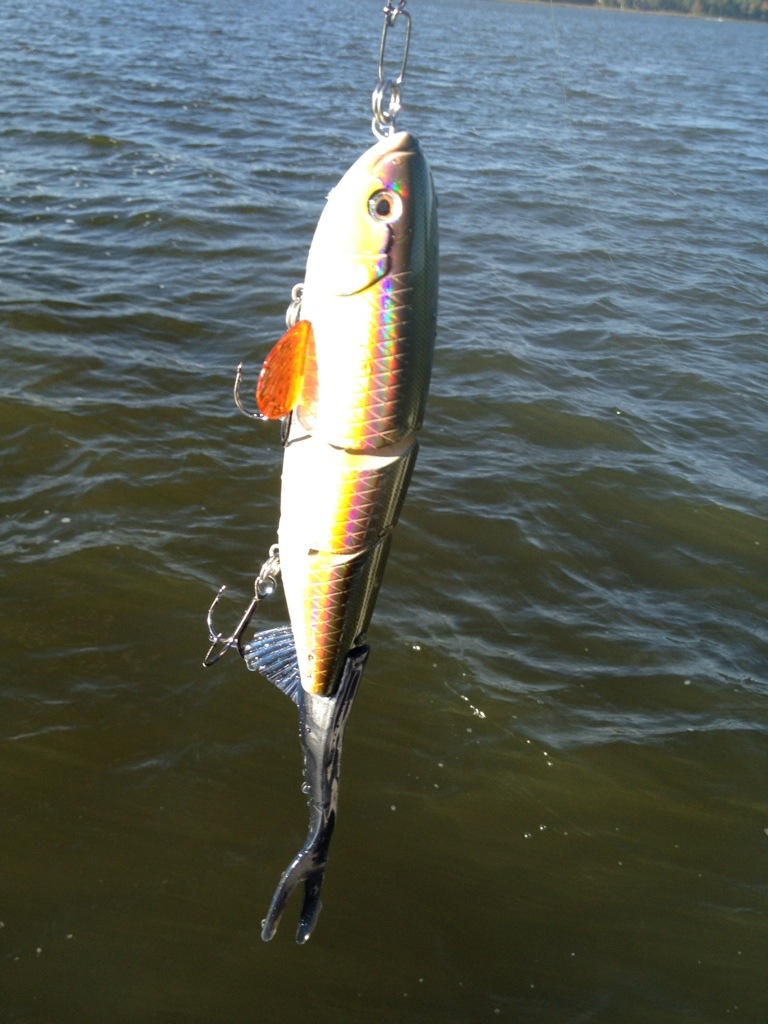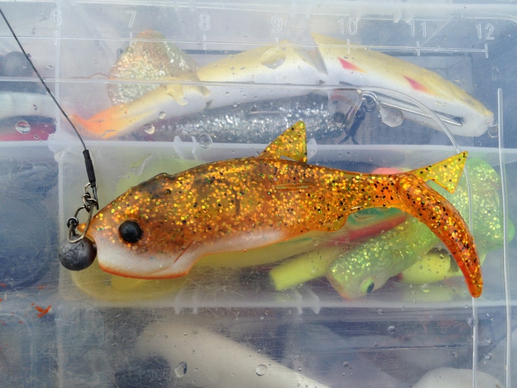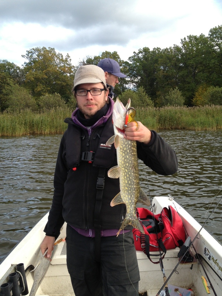 Vi öste på med mestadels jig till en början, Orka, Kopyto, Berkley, jag testade även mitt “polska” spinnerbait.