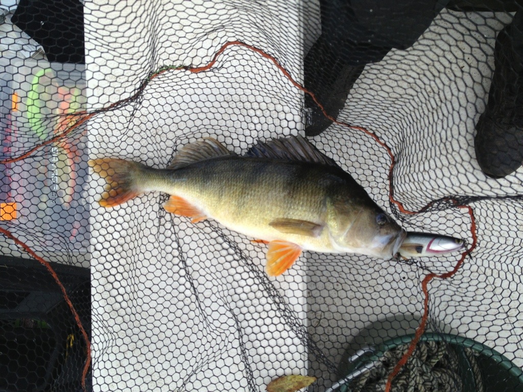 Det ser verkligen ut som abborren mulat in jerkbetet i munnen. (Jag kommer lägga upp fler bilder imorgon när Holmström skickar dem.)