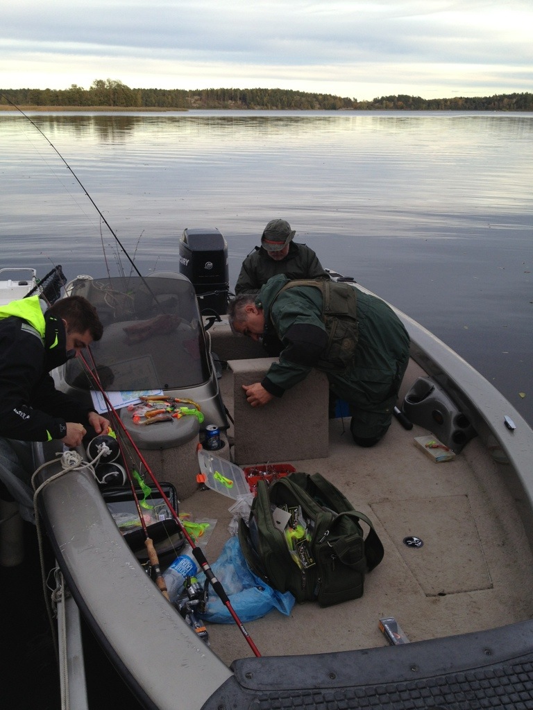 Sen kommer Holmström som bjuder även han på en gädda och en abborre. Jag själv får snällt kika på när de andra visar var eftermiddagsskåpet ska stå. 🙂