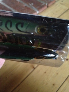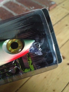 När haspeln på min Nasci pajjade för trettioelfte gången så superlimmade jag den och lät rullen vila, och gick över till jerkbaitspöt och Sebilespinnaren istället. Då betet är rätt nytt för mig så stod jag med kanske 2meter lina ute och skulle kolla hur snabbt det sjunker och om skedarna även roterar när betet sjunker. Hinner jigga betet typ en gång när det kommer en liten jäkla gäddninja och riktigt våldtar min spinnare. På Sebilespinnaren sitter det enbart en krok och den går rakt in i munnen, ut vid gälarna och sen går kroken in i buken. Ingen fara, gäddninjan klarade sig fint och simmade tillbaka till sina polare. Sen avslutade vår vänskap med att skvätta ner mig helt fullkomligt med vatten. 😀
