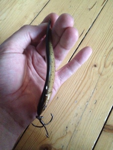 Det har regnat från och till hela dagen och åskan har brassat på så det står härliga till. Vid lunch kom jag på att jag sågat ut en bit ek, för att göra en wobbler. Polarn gör en wobbler som heter Lunkbait och jag hade planer på att göra en Lunkbait Fatty. Så det roade jag mig med ngn timme. (Skriver ett eget inlägg om det).