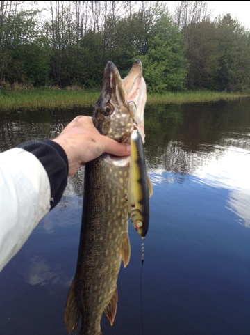 Fick tillslut upp en gädda i alla fall på Bison, bild finns nedan.