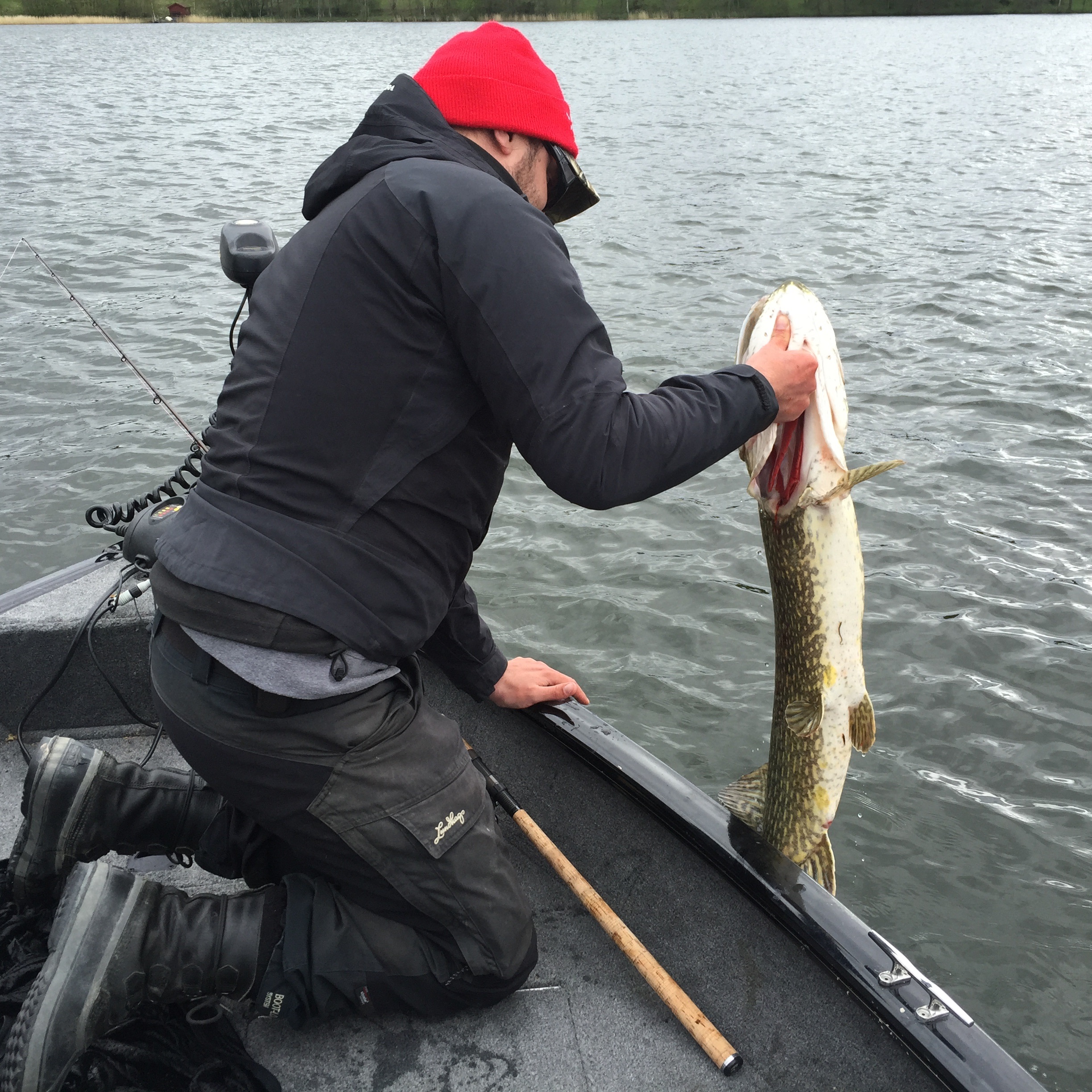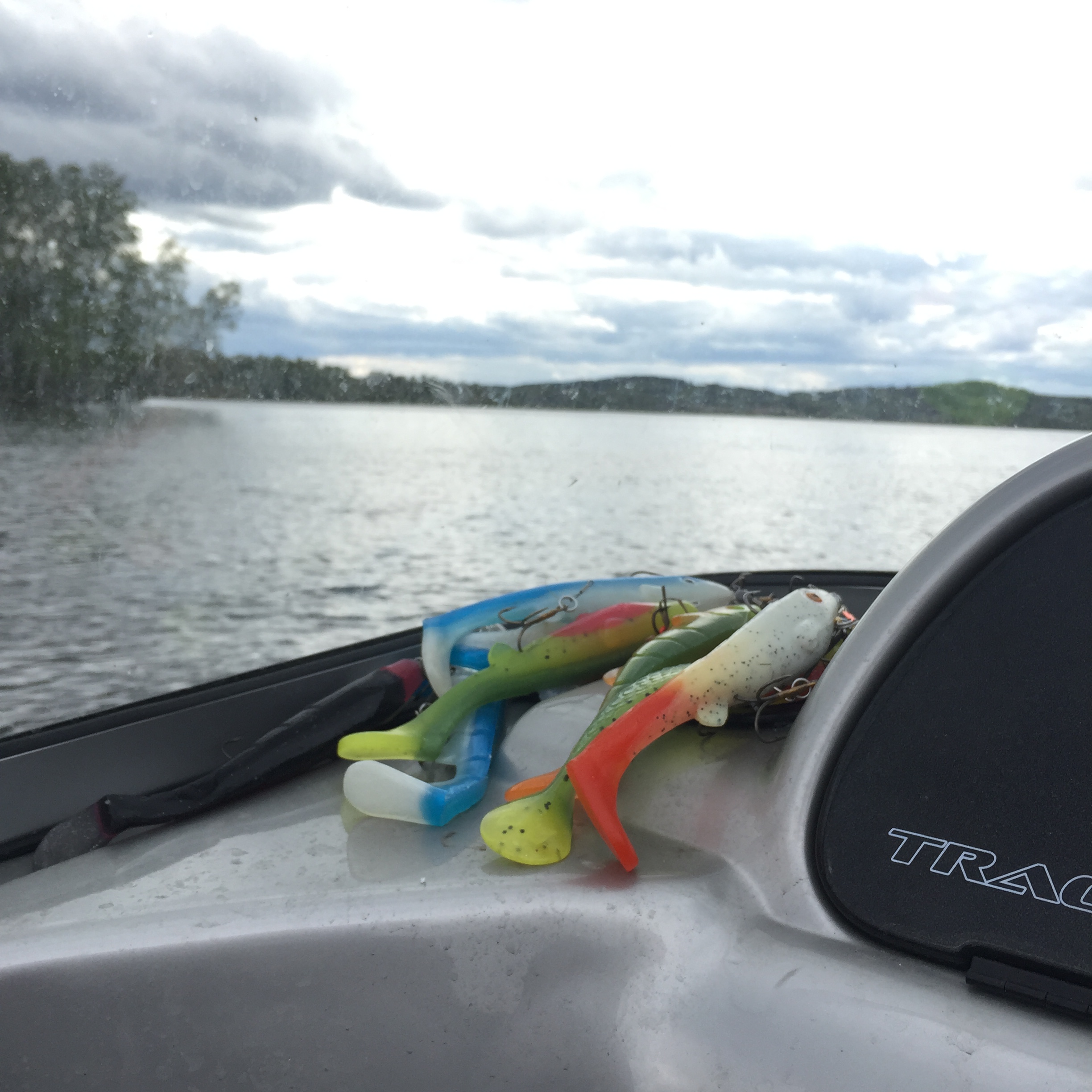 Jag blev tillfrågad för några veckor sedan av min gode vän Steve “EsoxGear” McVey om vi skulle köra Sm-kval i Gädda tillsammans. Självklart sa jag ja. Nu var helgen för tävlingen nådd. Vi hade tack vare klämdagar/röda dagar fredagen avsatt för fiske också. Andreas Jax som driver och äger Dalarnas Sportfiske och Steve hade styrt upp en fiskedate dagen innan tävlingen. Logo Besök Andreas butik vetja. Sjukt mycket beten. Mycket handgjort. Helt ärligt, för att vara en liten butik så har han ett fantastiskt utbud! Väl värt ett besök IRL eller i hans webshop. Klicka på bilden ovan så kommer ni rätt.  😀 . Jag vill redan nu tydliggöra för de nötter som trodde eller tror att vi fiskade i/på Hovran (tävlingsvattnet) att så INTE var fallet. Är det nu någon stackars själ som fortfarande tror vi fuskade, så kontakta mig, Steve eller Andreas och ta det med oss direkt. . Hur som haver, jag och Steve åkte från Stockholm innan solen hade gått upp. Resan gick fantastiskt snabbt, och vips var vi i Hedemora och mötte upp Andreas. För mig var det första gången jag och Jax skakade tass. Men vi har haft en hel del kontakt per telefon och Facebook innan IRL-mötet. Andreas är hur soft som helst, lite som någon man redan känner. Man fortsätter bara snacka där man slutade i telefon. Besök hans sportfiskebutik i Hedemora så får ni se och uppleva det själva.   😀 I Hedemora gjordes den vinnande picknickkorgen på Ica. 2 dubbeljapp, 4,5 liter vatten (bubbelfritt), 200gram chokladkaka (Helnöt). En picknickkorg som tillsammans med fiskesaker levererade 3 metergäddor under dagen. En picknickkorg som var så vinnande så vi copy-pastade inköpen dagen efter inför tävlingen.  😀 . Andreas hade med sin kompis AC och de fiskade tillsammans och jag och Steve körde med hans TRACKER ProGuide V16 WT till en början. AC kunde bara fiska till lunch-ish och sen skulle Jaxen hoppa över i vår båt. 1 Traila ner båten. EsoxGear-pimpad Tracker. Vilken skön syn! . Dagen till ära hade Steve med ett prototypbete som skulle fiskas. En shad. Jag vet inte hur mycket jag får avslöja om det, men det är aningens större variant, 20+ centimeter och 100-ish tung. Den gick som en dröm i vattnet! Lunkande gång med kroppen och stjärten eller shaden som sprattlade lockande. Ok, nu snackade jag med Steve, och vikten kanske inte blev helt rätt. Rätt svar lyder: “75 gr å 23 cm till paddelspetsen (rygglängd 21 cm)”. Men 20+ hade jag rätt på.  😀 . Rätt exklusivt kan jag presentera bilder av EsoxGear prototyp som är i tillverkningsprocess av gjutningsformar i pluralis så betena kan komma ut till butik inom en relativt snar framtid. Boon Shad ska betet heta. Bra jobbat Steve! bilder till TPF 004 Bara att hänga på låset när dessa godbitar kommer ut till butik! Bästa betyg från TPF!! . Dagen till ära fick vi testa på alla typer av väder. Vind, moln, solglimtar, kyla, värme, you name it. Enbart snö som saknades. Både jag och Steve fick oss endel småsnipor och mellanfiskar. Men inget av storlek. Vi nötte på, på de ställen som Jaxen tipsat om, men även andra ställen som såg heta ut. 3 Steve påväg o ploppa tillbaka en gädda till sin hemmiljö. . Får slå ett slag för Steves båt, jag har fiskat från hans förra båt också, en samma lika båt fast med en pulpet, nu är det med två. Det är som att vara ute i ett amerikanskt vardagsrum. Heltäckningsmattor och stora ytor. Att fiska 2-3 personer är inga som helst problem. Underbar! 26 Trackervy, Lucy och Boon Shad. . Första fiskarna fick jag på Steves jigmodell Lucy. En gammal trotjänare som funnits ett tag i ett gäng olika sportfiskebutiker runt om i landet. Finns även en stor modell av Lucy också. Men dessa två dagar körde jag enbart med den traditionella Lucystorleken och prototypjigen.  Lite som en homage till Steve blev det bara EsoxGearbeten dagarna till ära.  😀 Namnlös Stora och mindre Lucy. . Tror Steve drog första fisken, vi började smått som sagt. Men nötte på, jag gillar när fiskepassen bjuder på kontakter, behöver inte nödvändigtvis vara hugg. Men är det helt dött utan följare, pet osv så blir man lite hopplös i tankarna. Inte att man slutar fiska för det. Men pet i grejerna, en trött följare höjer ändå motivationen. Denna sjö bjöd på allt. Lite hugg, några följare, lite missade hugg. Riktigt motiverande. . Steve hade en följare modell större, ni vet när man får in betet mot båten, man ser en skugga som kommer bakom. Skillnaden var bara att denna skugga fortsatte förbi betet, och bara fortsatte och fortsatte. Kroppen tog liksom inte slut. Ni förstår själva. Den typen av kontakter gör inte direkt man slappnar av i fisket. Vi dunkade vidare med våra beten. Men ingen låååång fisk som ville ha kontakt med oss.   🙂 . Jag och Steve turades om att ta några kilosgäddor, varannan ungefär även om Steve hade mängdmässigt fler fisk än jag. 2 En av fiskarna som föll för en Lucy. . Det dröjde inte alltför länge innan Steve ropar de klassiska orden. “-Jaaapp, fisk…. *drilla några sekunder*, den är liite bättre iaf”. Underbara ord att höra, TPF gjorde sig beredd med håven och relativt snabbt kunde Steve drilla in fisken i håvbart avstånd. En finfin gädda. Den första meterfisken för dagen var ett faktum. 103cm lång och 6,28kg. 4 Blåvit Lucy tog första meterfisken. . Alltid skoj med bättre fisk i båten. Glädje, lite adrenalin och en fiskeönskan som står på max. 5 Herr McVey krokar loss. . Helt ok gap. 8 Rätt ordentliga tänder i en gäddmun.  🙂 . Den obligatoriska posebilden. 7 En nöjd Steve. Skönt med en finfin gädda i båten också. Bra fiskat! . Vi fortsatte att fiska, vi nötte en sträcka vi trodde på, och där vi haft bra följare och tidigare Steves större fisk. Rätt segt till jag bytte från Lucy. Måste lägga upp ett bete sen på en färg som Steve gjorde speciellt till m